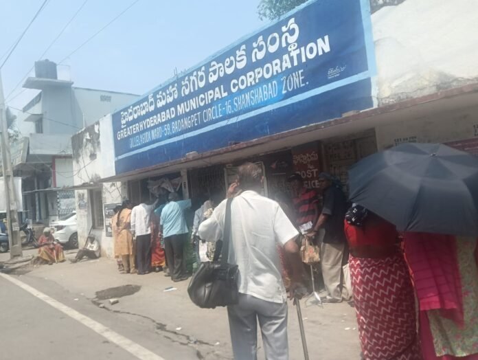 Homeతెలంగాణహైదరాబాద్అవ్వ తాతలు వికలాంగులు పింఛన్ల కోసం ఎండలో పడిగాపులు