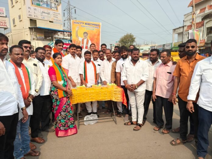 చేవెళ్ల నియోజకవర్గం పార్లమెంటు సభ్యులు కొండా విశ్వేశ్వర్ రెడ్డి పుట్టినరోజు సందర్భంగా మీర్ పేట్ కార్పొరేషన్ భారతీయ జనతా పార్టీ 1, 2వ వార్డు అధ్యక్షులు పసునూరి బిక్షపతి చారి, తులసి ముఖేష్ ముదిరాజ్, టీం కేవీఆర్ అధ్యక్షుడు టేకుల రాజశేఖర్ రెడ్డి ఆధ్వర్యంలో బాలాపూర్ చౌరస్తా వద్ద కేక్ కట్ చేసి అరటి పండ్లు పంపిణీ చేశారు. ఈ సందర్భంగా వారు మాట్లాడుతూ. బడుగు బలహీనవర్గాల ఆశాజ్యోతి పేద ప్రజల పెన్నిధి ప్రజా సమస్యలపై నిరంతరం పోరాడే వ్యక్తి ఎంపి కొండా విశ్వేశ్వర్ రెడ్డి కి మీర్ పేట్ కార్పొరేషన్ 58, 59, 60. డివిజన్ల తరపున పుట్టినరోజు శుభాకాంక్షలు తెలిపారు. ఈ కార్యక్రమంలో ప్రధాన కార్యదర్శులు ఇంద్రావత్ రవి నాయక్, వెంకటేశ్వర్ రెడ్డి, సిద్దాల శ్రీనివాస్, జిల్లా కౌన్సిల్ సభ్యులు కోడూరు సోమేశ్వర్, ముత్తంగి కరుణానిధి. మాజీ అధ్యక్షుడు పెండ్యాల నరసింహ, గాజుల మధు, రంగారెడ్డి జిల్లా అధికార ప్రతినిధి మద్ది రాజశేఖర్ రెడ్డి. మాజీ కార్పొరేటర్లు ఏ భీమ్ రాజ్, కీసర హరినాథ్ రెడ్డి, ఎడ్ల మల్లేష్ ముదిరాజ్, కొండ్రు గౌరీ శంకర్, యాదగిరి యాదవ్ బెల్లంకొండ నాగరాజ్, నాగేష్, శ్యాంసుందర్, ఉపాధ్యక్షురాలు కుందనం లత, శాంతి కిరణ్ చారి, విజయ్, ఎస్టి మోర్చా అధ్యక్షులు శీను నాయక్, కిసాన్ మోర్చా అధ్యక్షులు గోలి శ్రీనివాస్ రెడ్డి, రాఘవేందర్ గౌడ్, అనిల్ కుమార్, జగన్ ముదిరాజ్, మల్లికార్జున్ రమేష్, ప్రదీప్, ప్రశాంత్, భాస్కర్, భాస్కర్ రెడ్డి, కోట్ల గోపాల్ , చందు సంపట్ల, అనిల్ కుమార్, జైపాల్ రెడ్డి, బిజెపి రాష్ట్ర జిల్లా మున్సిపల్ నాయకులు. మాజీ ప్రజాప్రతినిధులు సీనియర్ నాయకులు కార్యకర్తలు పెద్ద ఎత్తున పాల్గొన్నారు.
