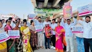 గ్యాస్ బండ కటౌట్లతో వినూత్న రీతిలో బీఆర్ఎస్ పార్టీ ఆధ్వర్యంలో పెద్ద ఎత్తున నిరసన