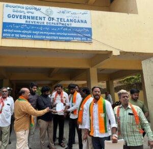 రాష్ట్ర ముఖ్యమంత్రి రేవంత్ రెడ్డి ప్రజలకు ఇచ్చిన హామీలను నెరవేర్చకుండా ప్రజల దృష్టి మళ్లించడానికి మూసి ప్రక్షాళన పేరుతో పేద ప్రజల ఇండ్లను కూలుస్తున్నారని బీజేపీ హైదరాబాద్ పార్లమెంట్ కో- కన్వీనర్ కోటి ధర్మతేజ, బహదూర్ పుర అసెంబ్లీ కంటెస్టెంట్ అభ్యర్థి వై నరేష్, బహదూర్ పుర అసెంబ్లీ కన్వీనర్ ప్రశాంత్, శాలిబండ డివిజన్ అధ్యక్షుడు సాయినాథ్, దుర్బోలి అధ్యక్షుడు నరేష్, కిషన్ బాగ్ అధ్యక్షుడు అరుణ్ కుమార్ లు ఆరోపించారు. ప్రభుత్వం ప్రజలకు ఇచ్చిన 6 గ్యారంటీలను అమలు చేయాలని డిమాండ్ చేస్తూ బహదూర్ పుర, బండ్లగూడ తహసిల్దార్లకు వినతి పత్రం అందజేశారు. ఈ సందర్భంగా వారు మాట్లాడుతూ మహా నగరాన్ని మూడు కార్పొరేషన్లుగా ప్రకటించి భాగ్యనగర్ హిందువుల మనో భావాలను తీవ్రంగా గాయపరిచారని ఆరోపించారు. హిందువుల మనోభావాలను దెబ్బతీసిన ఘనత సీఎం రేవంత్ రెడ్డికి చెందుతుందని మూడు కార్పొరేషన్లు అభివృద్ధికి నోచుకోలేవని.. మహానగరంలో విలీనం చేయడం అంటే ఆ ప్రాంతం యొక్క అభివృద్ధిని పరిస్థితిని పరిగణలోకి తీసుకుంటే బాగుండేదని అన్నారు. ఇప్పటికైనా రాష్ట్ర ప్రభుత్వం భాగ్యనగర్ హిందువుల మనోభావాలను కాపాడాలని ఈ కార్పొరేషన్లో ఏర్పాటును పునః పరిశీలించాలని బీజేపీ నేతలు డిమాండ్ చేశారు. మూడు కార్పొరేషన్లను విలీనం చేయడంతో రంగారెడ్డి జిల్లా పేరు ప్రశ్నార్ధకంగా మిగిలిపోయిందని పేర్కొన్నారు, దీనిపై ప్రజల దృష్టిని మరల్చడానికి కాంగ్రెస్ పార్టీ ఆరు గ్యారెంటీ ల హామీలు ఏమైతే ఉన్నాయో తెలంగాణ ప్రజలను ఆకర్షితులను చేసి అధికారాన్ని అప్పజెప్పితే ఆరు గ్యారెంటీలకు అతీగతీ లేకుండా పోయిందని, ఆరోపించారు. గత ప్రభుత్వం అవినీతి అక్రమాలకు పాల్పడితే కాంగ్రెస్ పార్టీ మరింత అవినీతికి పాల్పడుతూ మూసి ప్రక్షాళన పేరుతో కాంగ్రెస్ అధిష్టానానికి కప్పం కట్టేందుకు తహతహలాడుతుందని మండిపడ్డారు. రేవంత్ రెడ్డి ప్రభుత్వం అధికారంలోకి వచ్చి రెండున్నర సంవత్సరాలు అవుతున్నా ప్రజలకు ఇచ్చిన హామీలు నెరవేర్చకుండా గాలి మాటలు చెబుతున్న కాంగ్రెస్ పై ప్రజలు తిరగబడే రోజు వచ్చిందని వేలాది మంది ప్రజల ఇండ్లను కూల్చడంతో ప్రజలు భయం గుప్పిట్లో బతుకుతున్నారని ఆరోపించారు. రేవంత్ రెడ్డి తన ప్రవర్తనను ఇలాగే కొనసాగిస్తే భారతీయ జనతా పార్టీ అడ్డుకుంటుందని కాంగ్రెస్ మూసి ప్రక్షాళన, బీఆర్ఎస్ కాలేశ్వరం మిషన్ భగీరథ పేరుతో చేసిన అవినీతిపై బుద్ధి చెప్పేందుకు ప్రజలు సిద్ధమవుతున్నారని అన్నారు. భారత రాష్ట్ర సమితి కి గతంలో అసెంబ్లీ లో మెజార్టీ రాకుండా పార్లమెంటులో ఒక్క సీటు గెలవకుండా బుద్ధి చెప్పినా ఆ పార్టీకి ఇంకా బుద్ధి రాలేదని, ఆ పార్టీ కోవలోనే రేవంత్ రెడ్డి ప్రయాణం చేస్తున్నారని ఆరోపించారు. క