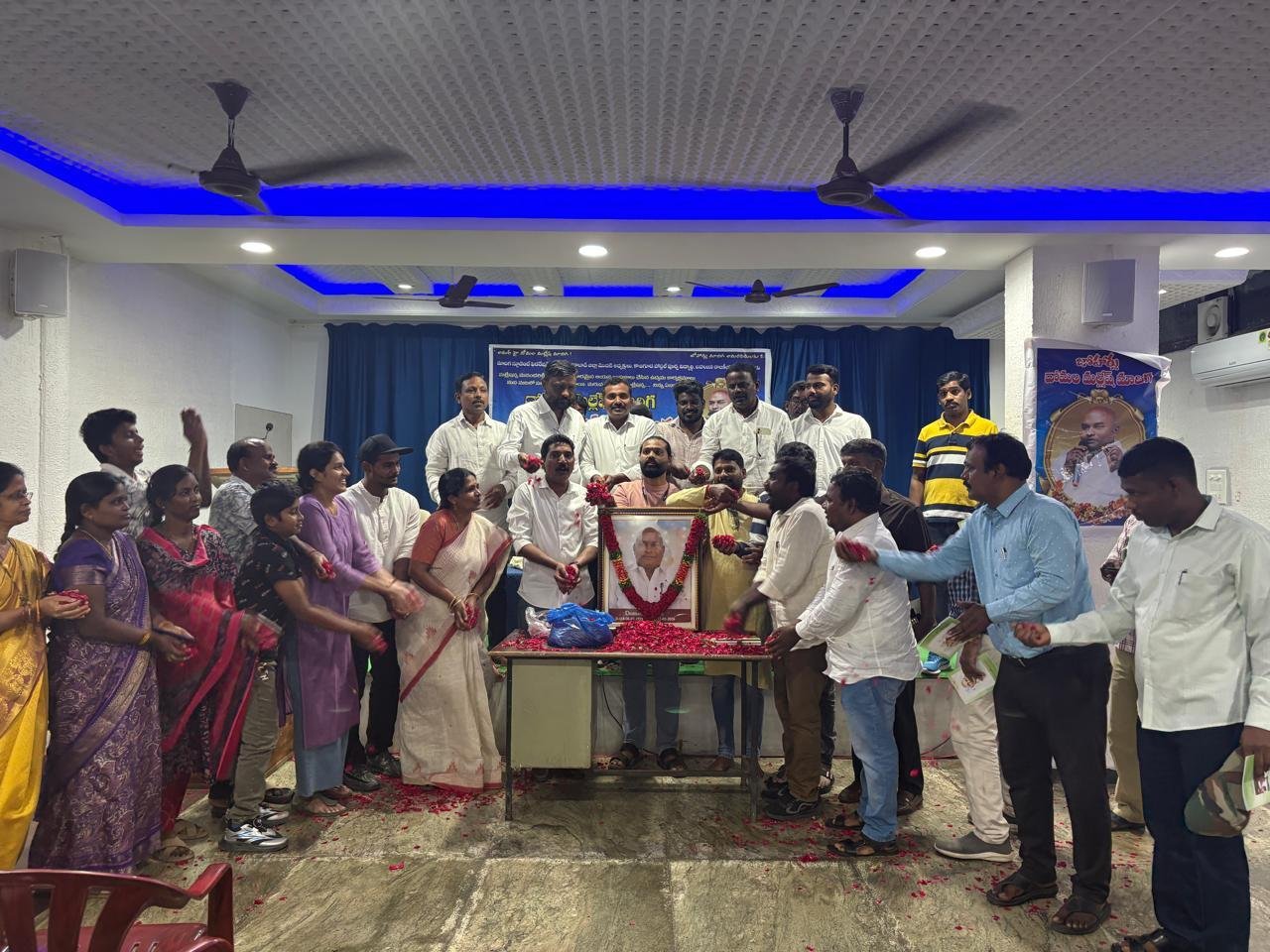 దోమల మల్లేష్ మాదిగ చిత్రపటానికి పూలమాలలు వేసి నివాళులర్పించిన మాజీ మంత్రి మోత్కుపల్లి నర్సింహులు