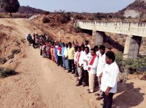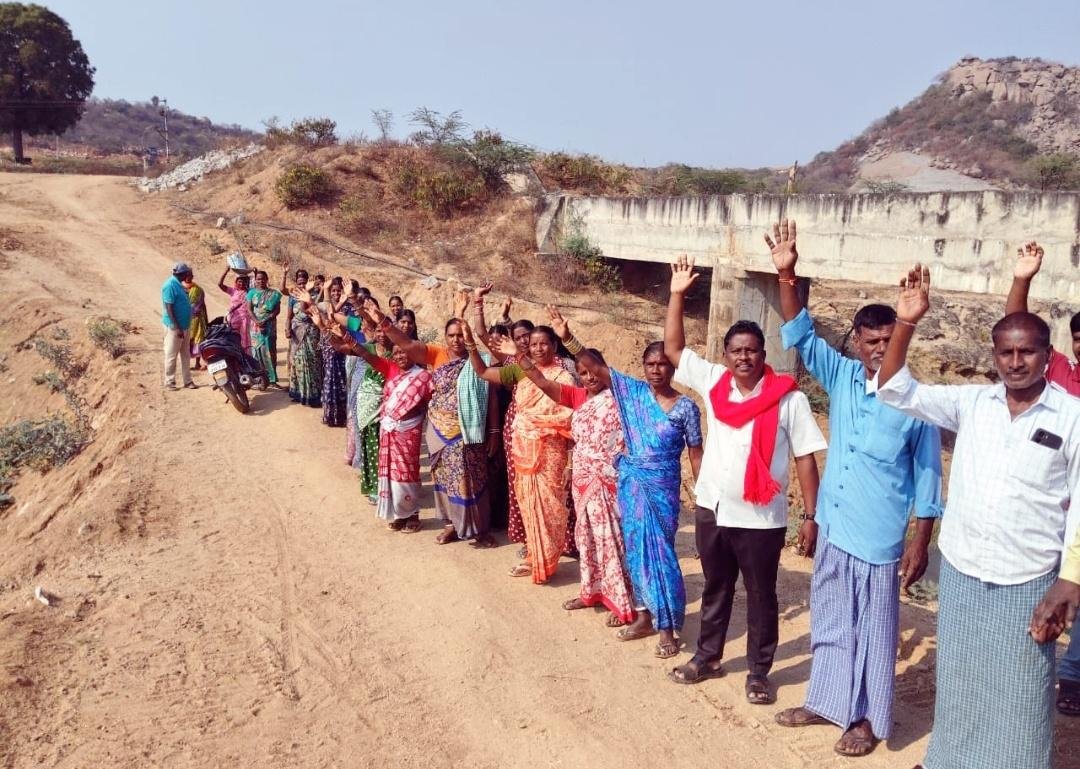 ముత్తిరెడ్డిగూడెం గ్రామంలోని బస్వాపురం ప్రాజెక్ట్ కాల్వపై వెంటనే బ్రిడ్జి నిర్మాణం చేపట్టాలని సీపీఎం రాష్ట్ర కమిటీ సభ్యులు కొండమడుగు నరసింహా డిమాండ్ చేశారు. ఈ మేరకు గురువారం ముత్తిరెడ్డిగూడెం గ్రామంలోని మబ్బు రాళ్ల కాడ ఉన్న కాలువ వద్ద నిరసన కార్యక్రమాన్ని చేపట్టారు. ఈ సందర్భంగా కొండమడుగు నరసింహా మాట్లాడుతూ.. రైతులు, వృత్తిదారులు, గ్రామీణ వ్యవసాయ, గొర్ల, మేకల పెంపకం దారులు, పాడి రైతులు బస్వాపురం ప్రాజెక్టు కాల్వలో పైపులు వేసి మట్టి పోయడం వల్ల రాకపోకలు కొనసాగిస్తున్నారని తెలిపారు. కానీ కాలువలో నుండి నీళ్లు సరిగా పోవడం లేద ని కుంటి సాకుతో బ్రిడ్జి నిర్మాణం చేయకుండానే పైపులను తొలగించాలని స్థానిక ఎమ్మెల్యే, ఎంపీ, ప్రభుత్వాధికారులు నిర్ణయం తీసుకోవడంపై ఆయన ఆగ్రహం వ్యక్తం చేశారు. బ్రిడ్జి నిర్మాణం చేపట్టకముందే పైపులను తొలగిస్తే గ్రామంలోని ప్రజలు అవతలి వైపు పోవడానికి అవకాశం ఉండదన్నారు. ముందుగా కాలువ లోపల ఉన్న పైపులను తొలగించకుండా బ్రిడ్జి నిర్మాణం చేపట్టాలని డిమాండ్ చేశారు. ప్రజలు కాలువ దాటడానికి బ్రిడ్జి నిర్మాణం చేపట్టకుండా కాలువలో ఉన్న పైపులను తొలగించాలన్న ప్రతిపాదనను స్థానిక ఎమ్మెల్యే, ఎంపీ అధికారులు విరమించుకోవాలన్నారు. లేని పక్షంలో ప్రజలందరితో కలిసి కాలువను పూడ్చడానికి కూడా వెనకాడమని హెచ్చరించారు. ప్రతిపక్షంలో ఉన్నప్పుడు ఒక మాట.. అధికారం చేపట్టినంక మరొక మాట మాట్లాడకుండా ప్రజా ప్రతినిధులు వ్యహరించాలని హితవు పలికారు ప్రజలను ఇబ్బందుల పాలు చేసే పనులను చేపడితే చూసుకుంటూ ఊరుకునే ప్రసక్తే లేదన్నారు. ఇప్పటికైనా స్థానిక ఎమ్మెల్యే, ఎంపీ, జిల్లా కలెక్టర్ బాధ్యత తీసుకొని కాల్వపైన బ్రిడ్జి నిర్మాణము చేపట్టాలని డిమాండ్ చేశారు. భువనగిరి మండలం ముత్తిరెడ్డిగూడెం గ్రామంలోని బస్వాపురం ప్రాజెక్ట్ కాల్వ వద్ద సీపీఎం, కాంగ్రెస్, బీఆర్ఎస్ పార్టీల ఆధ్వర్యంలో రైతులు, వ్యవసాయ కూలీలు, గ్రామ ప్రజలు, గ్రామ ప్రజా ప్రతినిధులు నిరసన తెలియజేశారు.
